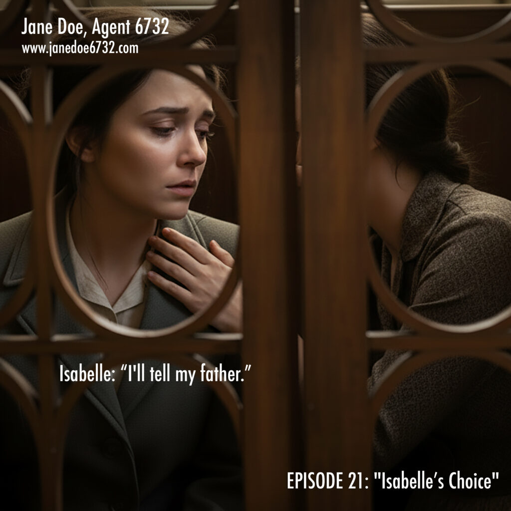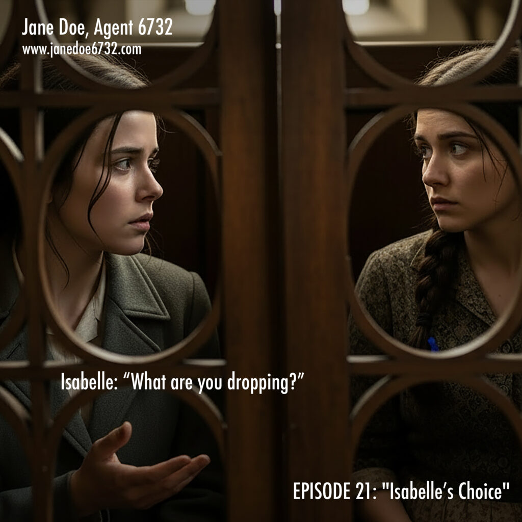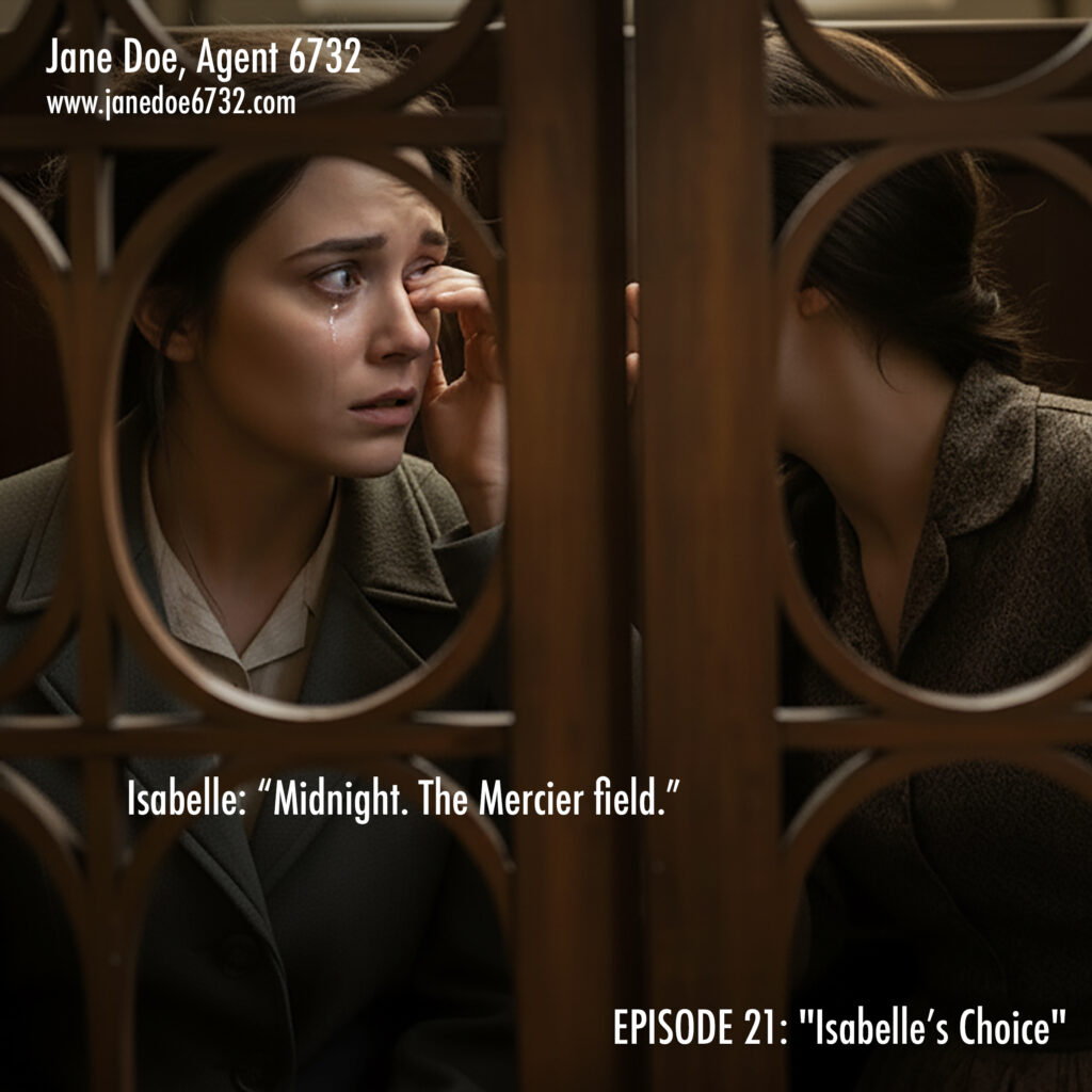January 4, 2026 | No Comments Isabelle Mercier. 17. Chooses resistance over safety. The network grows. #JaneDoe6732 #SaintMartin #Confession #WWIIFiction #GraphicNovel Tags: GraphicNovel, Jane Doe, Jane Doe Program, JaneDoe6732, OSS, Saint-Martin, SOE, Spy Thriller, WWII Fiction